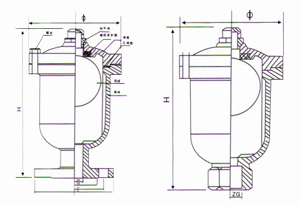 法蘭式單口排氣閥外形結(jié)構(gòu)圖: